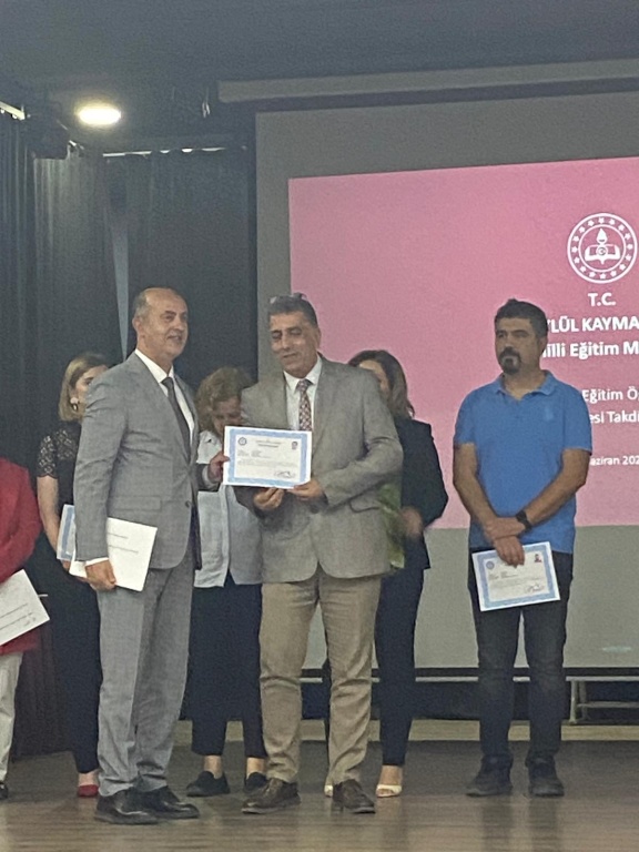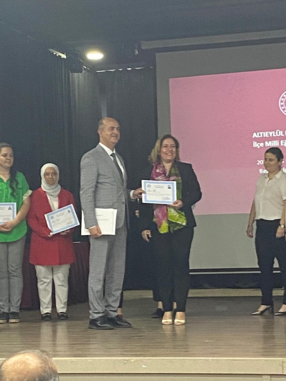 2024-2025 eğitim-öğretim yılında okulumuzda uygulanan ERASMUS+ yurt dışı projesindeki emeklerinden dolayı Okul Müdürümüz Ayhan Varlık, İngilizce Öğretmenimiz Yasemin Kılıç ve Bilişim Teknolojileri Öğretmenimiz Ali Doğan Altıeylül Kaymakamlığı tarafından Başarı belgesi ile ödüllendirildi. Başarı belgelerini İlçe Milli Eğitim müdürümüz Sayın Çetin Keren takdim etti. Bizler de öğretmenler olarak Sayın müdürümüzü ve arkadaşlarımızı tebrik ediyor, başarılarının devamını diliyoruz.
